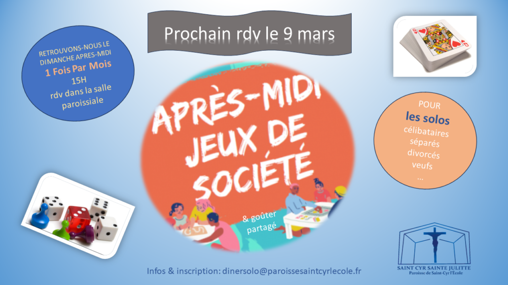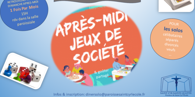 Merci d’annoncer votre présence par mail à cette adresse : dinersolo@paroissesaintcyrlecole.fr