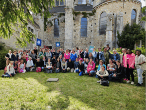 C’est donc derrière de magnifiques bannières aux noms de ces grandes saintes évocatrices que les 33 marcheuses des paroisses de Saint-Cyr l’Ecole, Fontenay-le-Fleury et Bois d’Arcy se sont élancées le samedi 17 mai 2025 sous un soleil radieux, abandonnant joyeusement les turpitudes du quotidien. Confiantes et pleines d’espérance, elles se sont mises à l’école de Marie, à la fois modèle de foi, refuge des pécheurs et Reine du Ciel ! Après une étape à Epernon, rejoint par d’autres pour le deuxième jour, le groupe a atteint les 70 pèlerines qui sont arrivées à Gallardon avec leur sac plein d’intentions de prières. La préparation spirituelle, la rupture avec le quotidien sans téléphone, les méditations ou confessions en marchant, les conférences, et moments de partage joyeux, le tout dans un écrin de verdure, sont autant de temps forts qui ont marqué durablement les esprits et les cœurs.